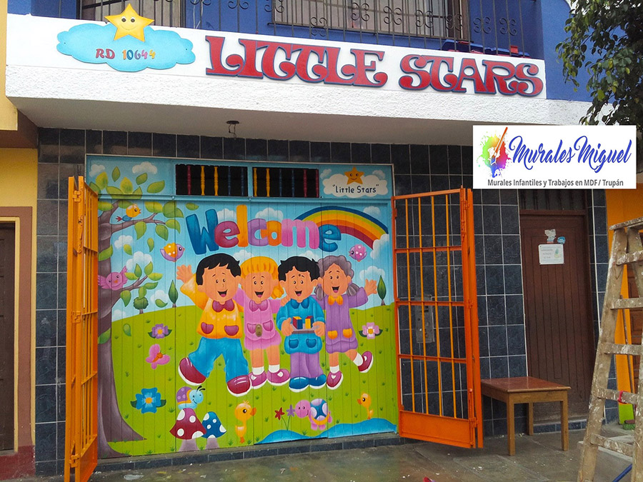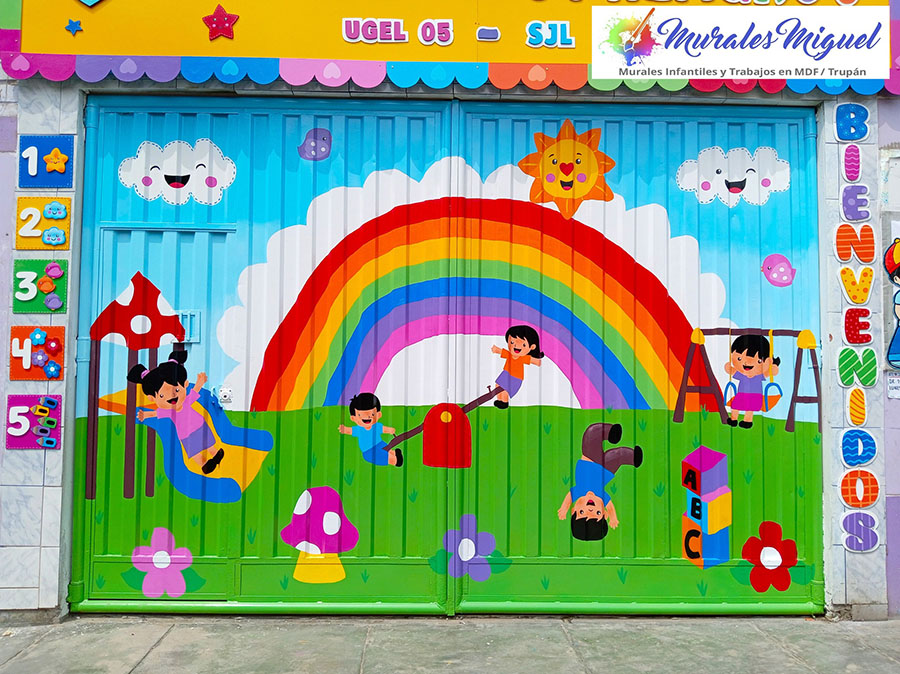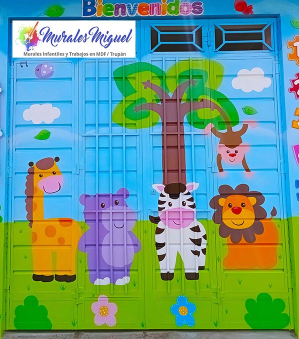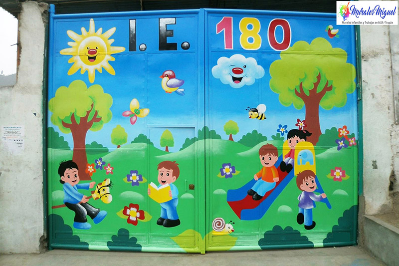 Murales infantiles pintados en portones y puertas
